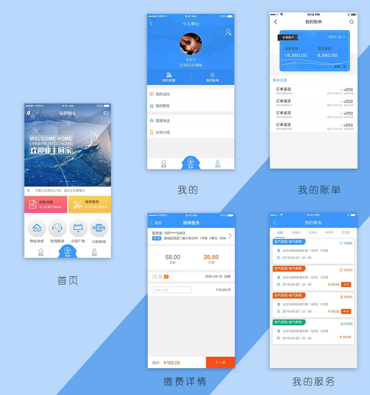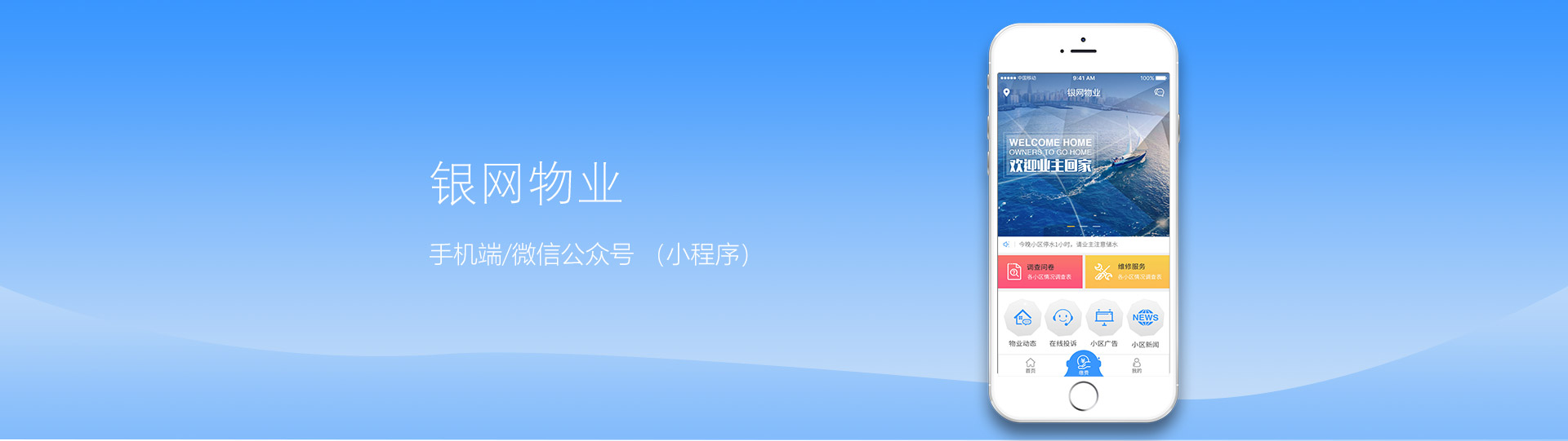 银网物业软件开发,手机微信公众号(小程序),为用户提供方便的物业管理,缴费、维修服务、物业动态、小区新闻、小区广告、物业账单等服务。